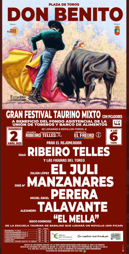En esta sección de Taquillaoficial.com, usted podrá comprar oficialmente, abonos, entradas, o boletos para asistir a cualquier evento taurino celebrado en la Plaza de Toros de Don Benito en el año 2025. Taquillaoficial.com es una empresa encargada de vender oficialmente las entradas de la Plaza de Toros de Don Benito en el año 2025 de manera online y de una forma segura, garantizando sus entradas una vez compradas al 100%. A su vez en Taquillaoficial.com podrá hacer la reserva de sus abonos y entradas para los toros en Don Benito con anterioridad al día de inicio de la venta de entradas y así no se perderá usted su evento preferido.