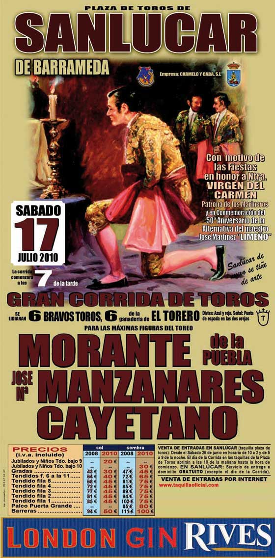 En esta sección de Taquillaoficial.com podrá reservar abonos, entradas, tickets o boletos para asistir a ver los toros en la plaza de toros de Sanlúcar de Barrameda 2025 llamada Coso de El Pino. Taquillaoficial.com es vende entradas de la plaza de toros de Sanlúcar de Barrameda 2025 online de una forma segura y garantizando sus entradas una vez compradas al 100%.En taquillaoficial.com podrá hacer reserva de abonos y entradas, para toros Sanlucar de Barrameda con anterioridad al día de inicio de la venta de entradas y así no se perderá usted su evento preferido.