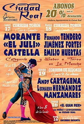 En esta sección de Taquillaoficial.com, podrá comprar oficialmente, abonos, entradas o boletos para asistir a cualquier evento taurino celebrado en la Plaza de Toros de Ciudad Real en el año 2025. Taquillaoficial.com es una empresa encargada de vender oficialmente las entradas de la Plaza de Toros de Ciudad Real en el año 2025 de manera online y de una forma segura, garantizando sus entradas una vez compradas al 100%. A su vez en Taquillaoficial.com podrá hacer la reserva de sus abonos y entradas para los toros en Ciudad Real con anterioridad al día de inicio de la venta de entradas y así no se perderá usted su evento preferido.